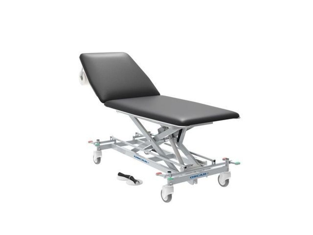 Undersökningsbrits STANDARD Hydraulisk är en gedigen brits med full stabilitet oavsett läge. Slitstark och tålig klädsel anpassad utefter ett utökat behov av spritning. Undersökningsbritsen har fyra låsbara hjul, pappershållare, gasfjäderreglerad rygg och gasfjäderreglerat chockläge. Den hydrauliska höjdregleringen sker rakt upp och rakt ner, vilket innebär att britsen med fördel kan placeras mot en vägg. Höjdregleringen görs med en fottrampa som nås från båda sidor av britsen. Höjden är väl tilltagen både i lägsta och högsta läget. Klädseln är miljöanpassad beträffande kemikalieinnehåll och uppfyller alla högt ställda krav på slitstyrka och tålighet. Går att rengöra med 75-procentig alkohollösning utan eftertorkning med vatten. Vilket hjälper till att spara tid mellan patientbesöken. Den är fri från PVC. Standardfärg vid beställning är antracit men den går att få i 14 andra färger, utan extra kostnad. Vänligen kontakta kundtjänst för val av färg samt möjligheter kring inburen leverans. - Uppfyller kraven enligt ISO 10993-10:2014 - Flamskyddade enligt EN1021-1, EN1021-2 - Mått (LxBxH): 200 x 70 x 46,5-93cm - Maxvikt: 200kg - Färg standard: antracit - Material klädsel: konstläder
