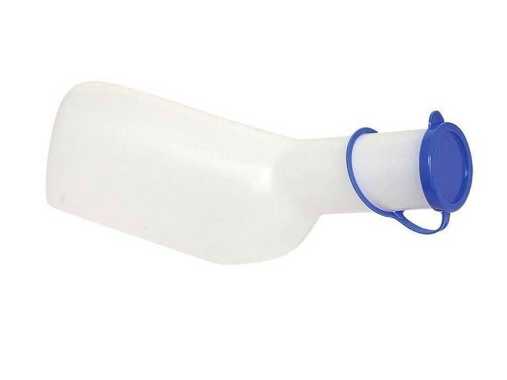 Urinflaska för män, med lock för att minimera risken för spill. Flaskan rymmer 1000ml och har tydlig volymangivelse graderad i 100 ml intervall. Lätt att tömma och kan autoklaveras upp till 130°C.