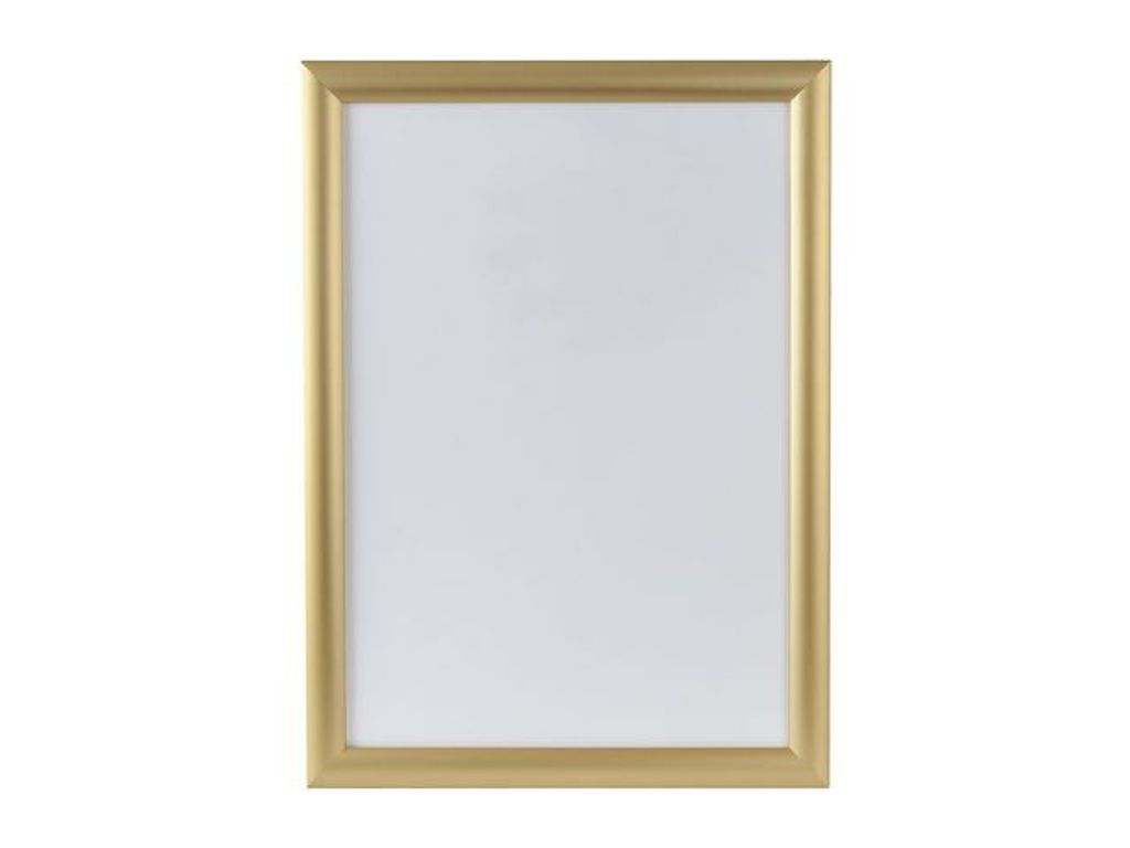 Väggram A3 i aluminium med 25mm ram. Enkelt att byta budskap samt ger en snygg inramning av budskapet. Inklusive frontplast samt skruv & plugg för montering. Eloxerad guld.