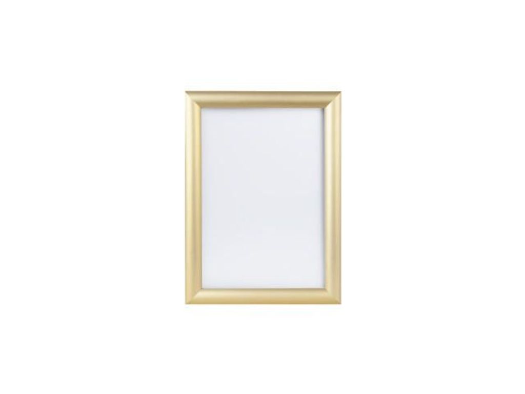 Väggram A4 i aluminium med 25mm ram. Enkelt att byta budskap samt ger en snygg inramning av budskapet. Inklusive frontplast samt skruv & plugg för montering. Eloxerad guld.