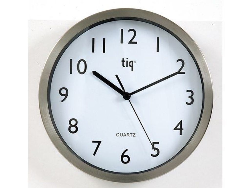Beskrivning av Väggur TIQ Ø25cm aluminium Praktisk klocka med snygg och stilren design! Med ram i matt silverfärg, vit urtavla och glaslins. Diameter 25 cm. Drivs med ett AA-batteri (medföljer ej). Garanti: 1 år.