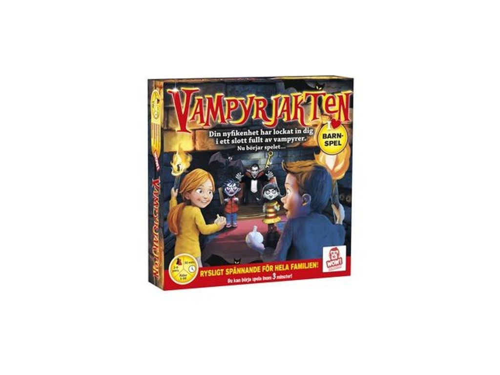 Din nyfikenhet har lockat in dig i ett slott fullt av vampyrer, nu börjar spelet! I Vampyrjakten gäller det att ta sig ut ur Draculas slott, men du måste akta dig för att bli fångad och biten av Dracula. Händer det, ändrar du skepnad och blir vampyr du också! Spänning och snabba vändningar i detta spel som är fantastiskt kul att spela för hela familjen! - Rekommenderad ålder: 5 år uppåt - Antal spelare: 2-6 personer - Speltid: ca 30 minuter Varning. Lämpar sig inte för barn under 3 år