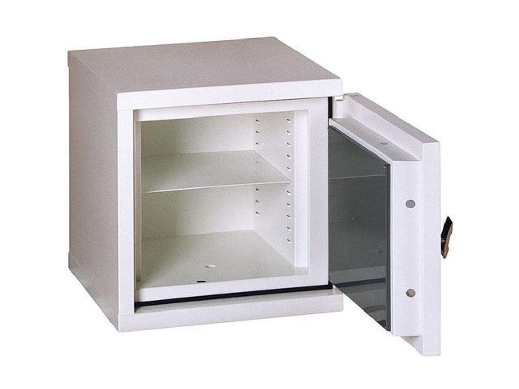 Skydda dina värdesaker mot både inbrott och brand i ett certifierat värdeskåp! Inbrottsklassat enligt EN 1143-1 Grade 0 (rek. belopp vid Svenska försäkringsbolag 50,000:-, i olarmat skåp). Brandklassat enligt NT Fire 017, 60P. Omställningsbart nyckellås - 2 nycklar ingår. Rymmer 6 pärmar, en hylla ingår. Totalt yttermått: 57 x 56,5 x 54 cm (HxBxD). Vikt: 195 kg. - EN 1143-1 Grade 0 - Brandklassat enligt NT Fire 017, 60P - Totalt yttermått: 57 x 56,5 x 54 cm (HxBxD) - Vikt: 195 kg