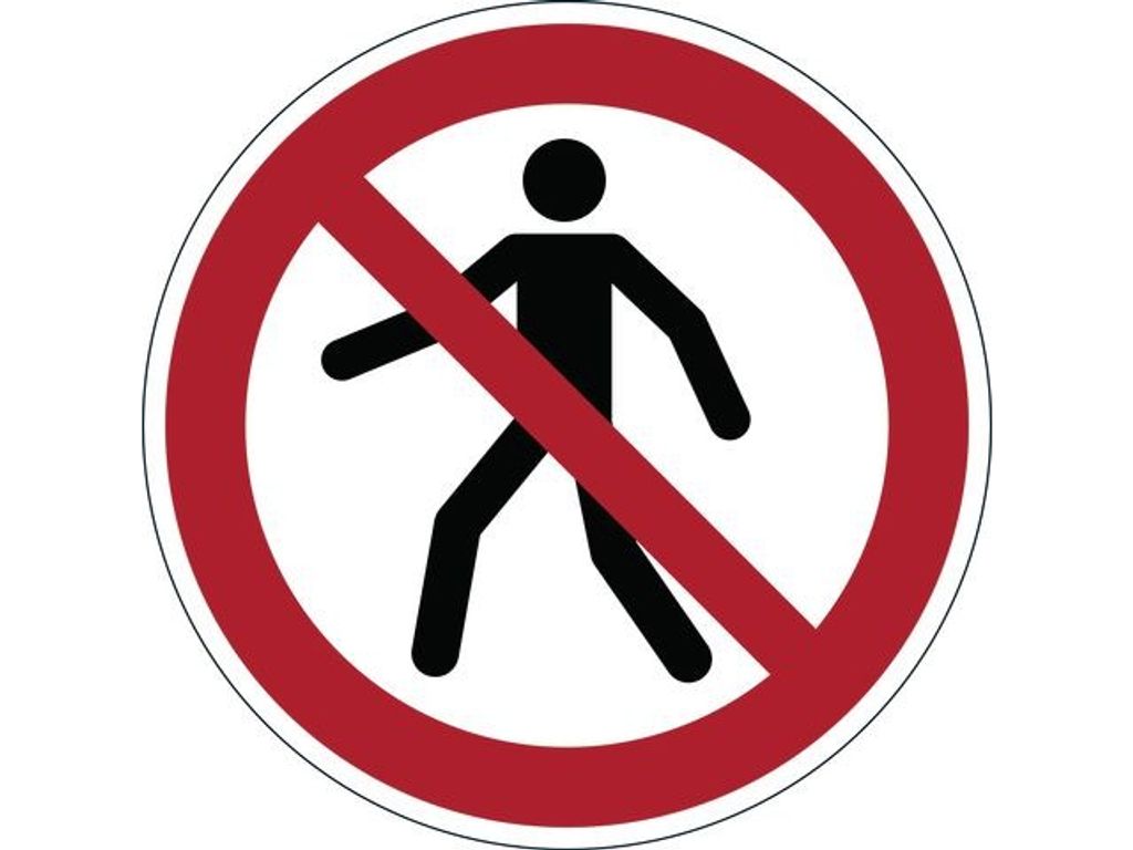 Beskrivning av Varseldekal 'Förbjudet för gående'