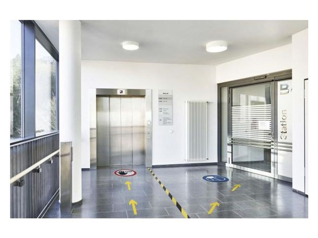 Självhäftande, borttagbar stor golvdekal 'STOP' som upplyser tydligt om att det är förbjudet att gå vidare inom området. Bra att använda för att vägleda rätt och ge bättre möjlighet att hålla avstånd. Varseldekal med påbuds eller förbudssymboler som hjälper till att kommunicera hygien och hålla-avstånd regler. Passar utmärkt att använda i t ex affärer, gym, hotell, restauranger. Klistermärket fäster på rena och torra betonggolv.