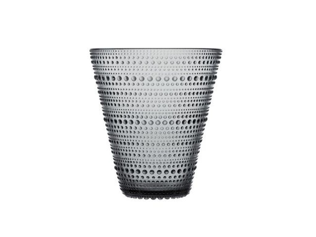 Kastehelmis banbrytande design med glasdroppar skapades när den legendariska finska designern Oiva Toikka sökte efter ett sätt att dölja skarvar i glas. Kastehelmi har ringar med glasbubblor som efterliknar strängar med glittrande daggdroppar i morgonsolen. Den populära Kastehelmi-serien består av en mängd lekfulla delar som är både funktionella och dekorativa. Var och en dessa unika och mångsidiga delar är som vackrast när starkt ljus får spela i glaset och framhäva dess gnistrande skönhet. Kastehelmi-vasen är skir men tålig. Dess enkla design ger en ledig elegans åt alla inredningsmiljöer. Den svala grå färgen framhäver blommorna på ett vackert sätt. Den självklara mittpunkten. En fantastisk bröllops-, födelsedags-, jubileums- eller inflyttningspresent. - Tillverkad in Iittala glasbruk i Finland - Material: Glas - Färg: Grå - Mått: 154 mm - Endast handdisk
