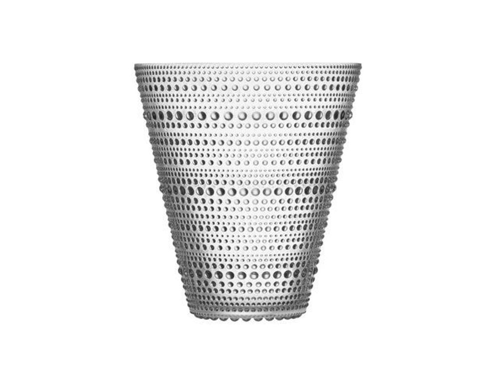 Designlegenden Oiva Toikka undersökte olika sätt att dölja skarvar i glas när han uppfann den banbrytande upphöjda droppdesignen som gör Kastehelmi så speciell. Kastehelmi har ringar med fina glasbubblor som efterliknar strängar med glittrande daggdroppar i morgonsolen. Seriens delar är som vackrast när starkt ljus får spela i glaset och framhäva dess gnistrande skönhet. Iittalas populära Kastehelmi-serie består av en mängd olika mångsidiga och taktila delar som är både funktionella och dekorativa. Det klara glaset lyfter fram Kastehelmi-vasens enkla design och ger en ledig elegans åt alla inredningsmiljöer. Framhäver blommor på ett vackert sätt. Den självklara mittpunkten. En fantastisk bröllops-, födelsedags-, jubileums- eller inflyttningspresent. - Tillverkad in Iittala glasbruk i Finland - Material: Glas - Färg: Klar - Mått: 154 mm - Endast handdisk