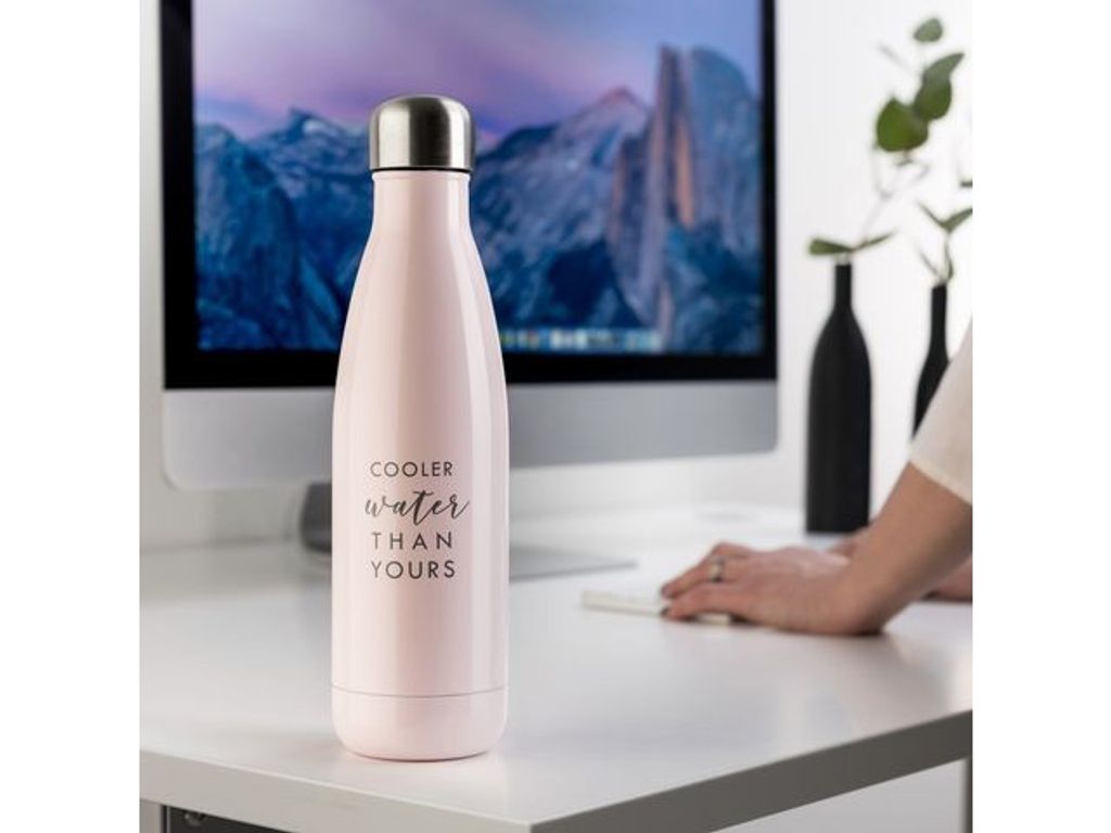 Vacuumisolerad vattenflaska tillvekrad i högklassigt rostfritt stål. Håller din dryck kall i upp till 24 timmar och varm i upp till 12 timmar. Den smala öppningen är lätt att dricka direkt ur, och du får även nedan normalstora isbitar i flaskan. Vrid lätt på korken för ett läckagesäkert skydd. JobOuts vattenflaska passar lika bra på jobbet, hemma på gymmet eller resan för fräscht och kallt vatten hela dagen. - Vattenflaskan finns i 7 unika färger och mönster - Mått: Ø 7 x 25,5 cm - Vikt: 0,3 kg - Material: Rostfritt stål, PP och Silikon