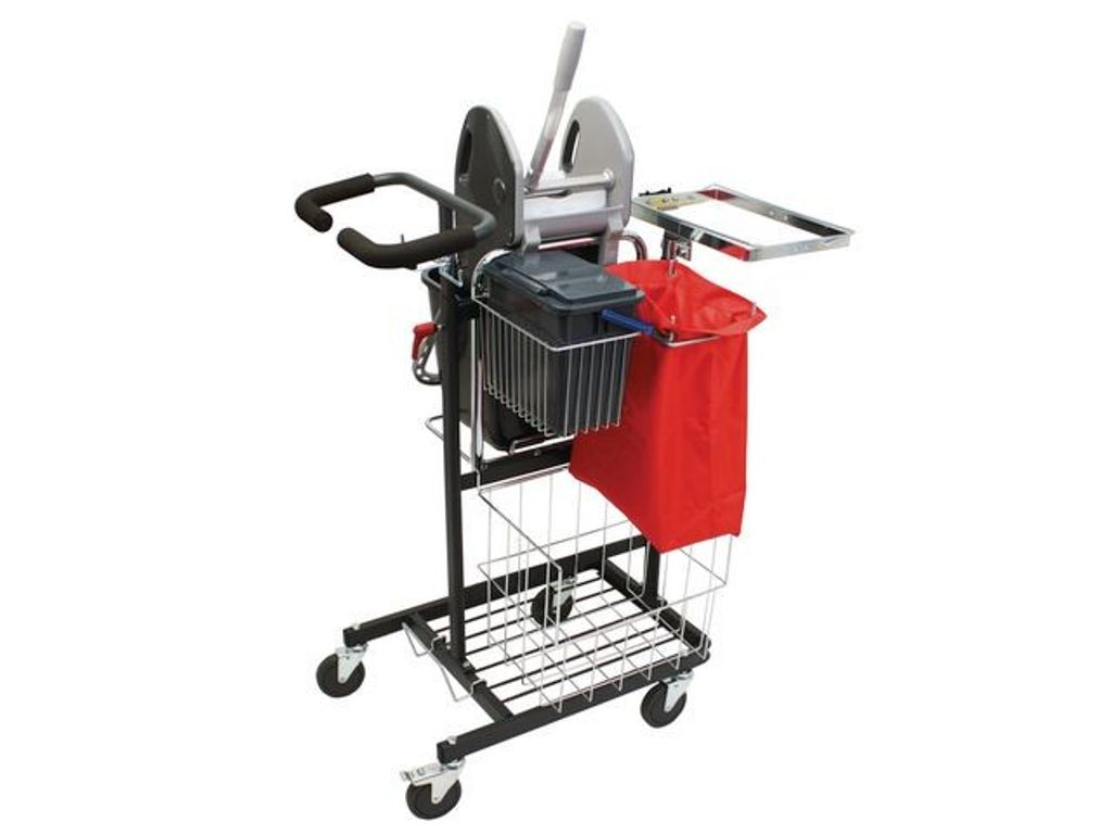 Beskrivning av Våtvagn Piccolino Liten och stabil. Enkel att montera. Komplett svabbutrustning. 6-litershink med flipplock. Liten tvättpåse. Extra stor materialkorg. Lättrullade 100 mm hjul. Plats för 2 stativ. Reglerbart handtag. Mått (LxBxH): 930x620x1260mm Svensktillverkad