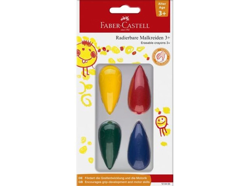Droppformade och tåliga barnkritor som passar utmärkt till små barnhänder. Idealiskt från 3 år. Formen underlättar övergången från knytnävsgrepp till fyrfingersgreppet och de 4 färgerna gör det roligt att rita. Kritorna är raderbara och färgar inte av sig på händerna. Förpackning kan återanvändas i förvaringssyfte. - Material: vaxkrita - PVC-fri