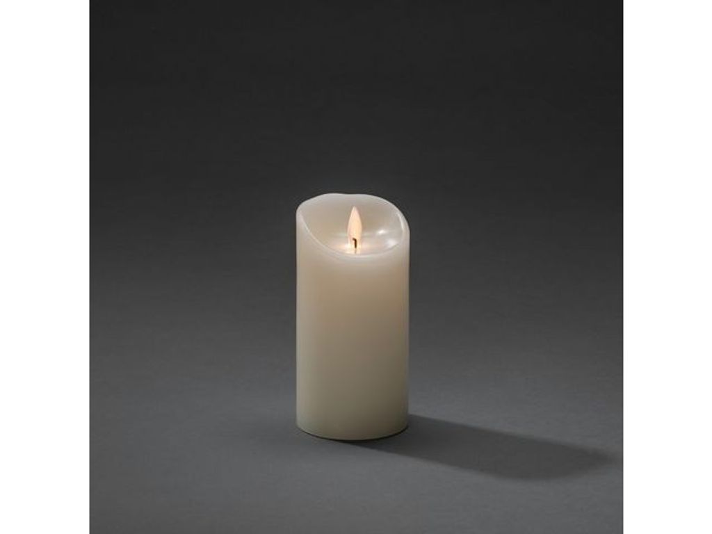 Beskrivning av Vaxljus 7,5x15,2 cm LED vitt Vaxljus, gräddvitt, 1 varmvit LED 7,5x15,2cm. Timer 4/8h 2xC - Batterier ingår ej