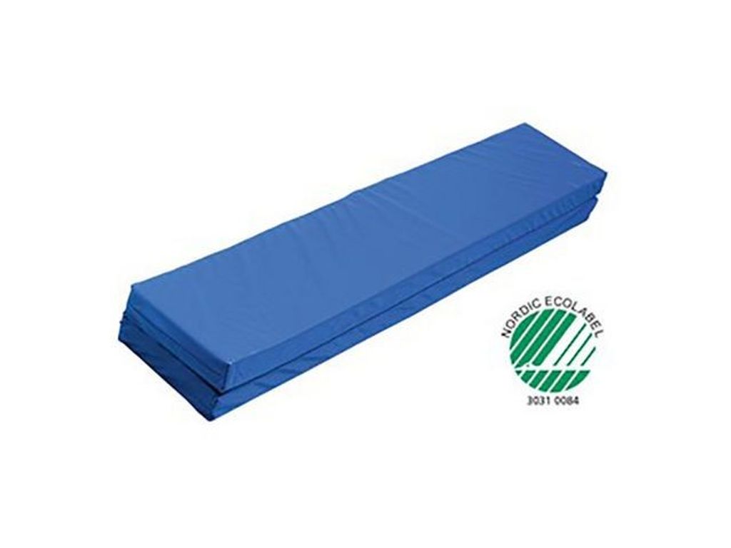 Madrassen Trygg är en Svanen och OEKO-TEX®-märkt vilmadrass. Perfekt madrass att använda på förskolor för vila. Madrassen har ett blått fodral tillverkad av ett 2-skiktsmaterial, bestående av 51% polyesterväv och 49% polyurethan och med en kallskumskärna. - Vattentät - Vikbar - Klädseln är maskintvättbar i 95 grader - Helt utan flamskyddsmedel eller PVC - Mått: 2x27x117x4 cm - Svanen licensnummer: 30310084