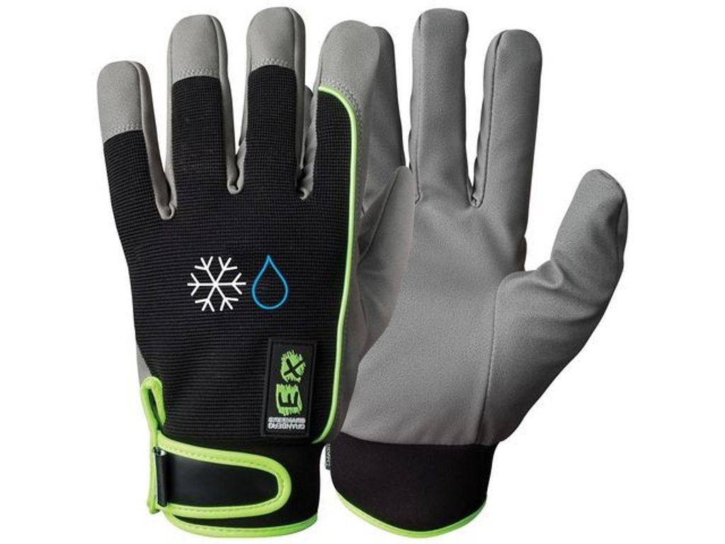 Vinterhandskar EX by Granberg i syntetiskt skinn som skyddar mot kyla och fukt. Montagehandskar i MicroSkin Shield-material med membran i ProTex och ovanhand i spandex. Med innerfoder som skyddar mot både kyla och fukt. Handskarnas membran gör att handsken får ventilerande egenskaper som undviker att handen blir fuktig och därmed kall. Handskarna har kardborreknäppning som ger en god passform, är smidiga och ger utmärkt greppförmåga. Kan maskintvättas och dropptorkas. Lämpliga för lätt till medeltungt arbete inom montering, transport, underhåll, industri, anläggning, butik och lager i torra och kalla miljöer. - CE-certifierad - Godkänd enligt: EN 388:2016+A1:2018, EN 420:2003+A1:2009, EN 511:2006, EN 511:2006 - Skyddsklass: II - Material innerhand: MicroSkin Shield - Material ovanhand: spandex/polyester - Foder: syntetfoder/ProTex membran - Fodertyp: helfodrad - Grepp: torrgrepp, våtgrepp - Längd: 21-24 cm - Färg: svart, grå, grön - Storlek: 11