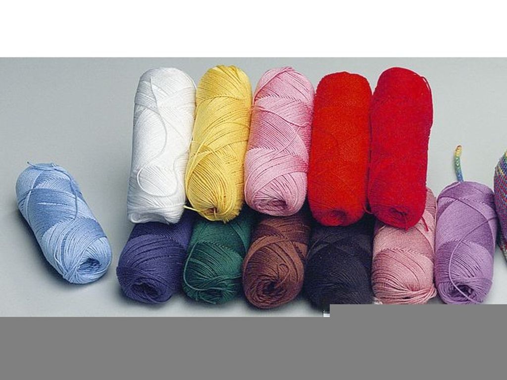 Merceriserat bomullsgarn. Färger på garnen: Ljusblå, vit, gul, rosa, orange, mörkröd, mörkblå, grön, svart och lila. - Nystan om 50 gram - 170 m/nystan - Rekommenderad sticka: nr 2½