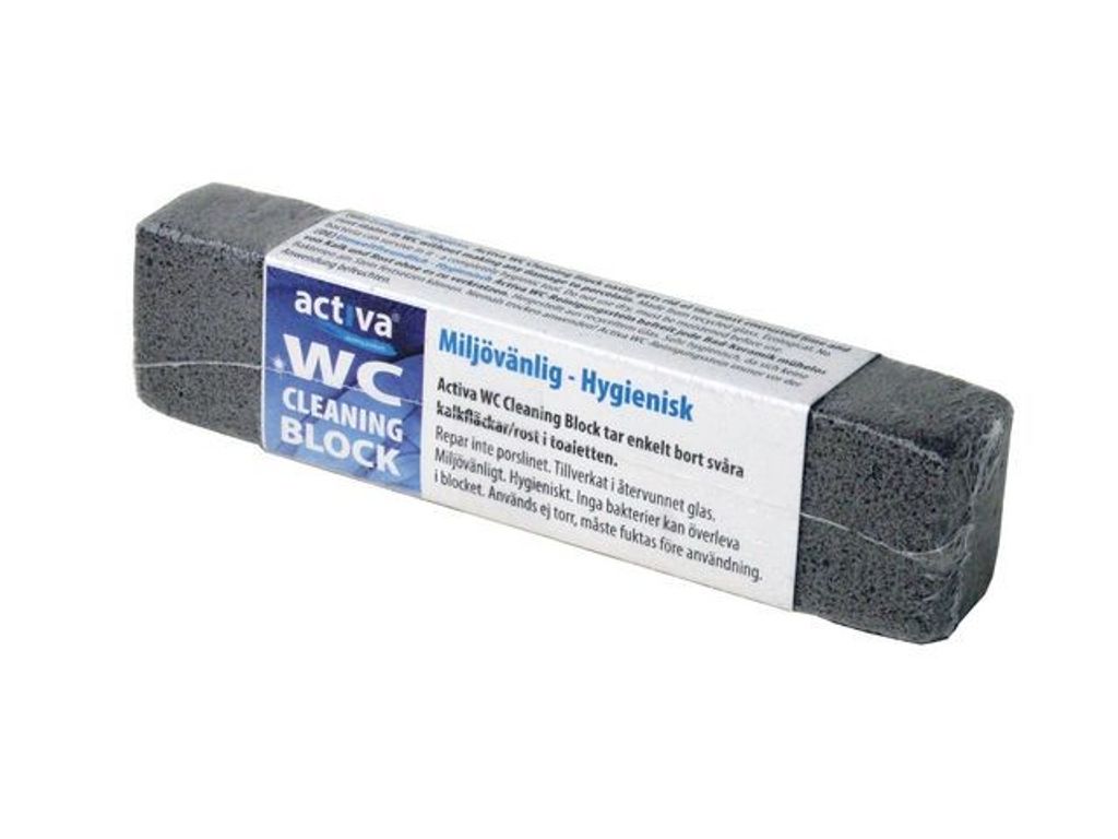 Effektiv borttagning av avlagringar etc. i toalettstolen. Blocket tar bort kraftiga kalkavlagringar, mögel och rost i toalettstol och i handfat där kemikalier inte hjälper. Repar inte när det används blött. Utan handtag.