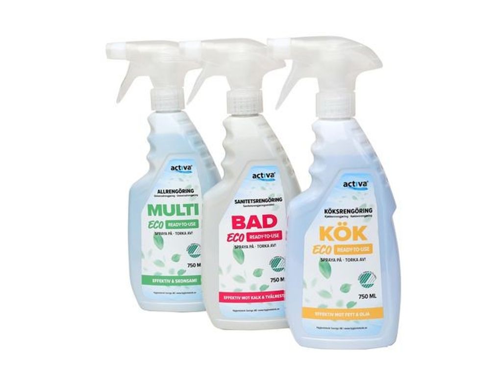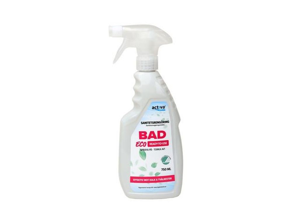 Ready-to-use! Sanitetsrengöring effektiv mot kalk och tvålrester. Svanenmärkt badrumsrengöring som är effektiv smuts. Spraya på och torka av med en duk. Vid hårt smutsade ytor, låt verka en stund innan avtorkning. Eftertorka med vatten på ytor som kommer i kontakt med livsmedel. Undvik kontakt med trä, aluminium eller porösa ytor. - pH-värde: ca. 2,1 - Lukt: Parfymerad - Utseende: Ofärgad vätska - Svanen: Licensnummer 30260264