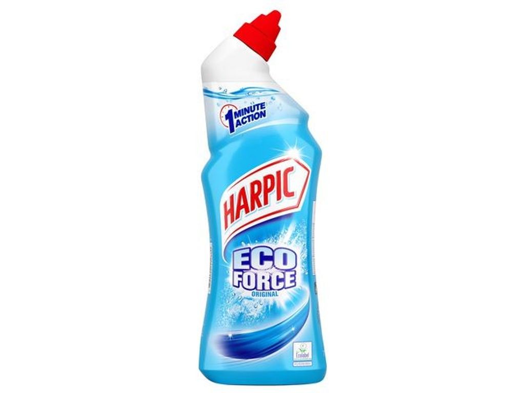 Håll din toalett ren och fräsch med Eco Force. Harpic säkerställer en effektiv rengöring av toaletten. Löser snabbt upp fläckar som kalk och rost. Effektiv även mot den tuffaste smutsen och mer skonsam för miljön. - pH-värde: 2,1-2,5 - Lukt: Parfymerad - Utseende: Blå vätska - EU Ecolabel: Licencenummer FI/020/001