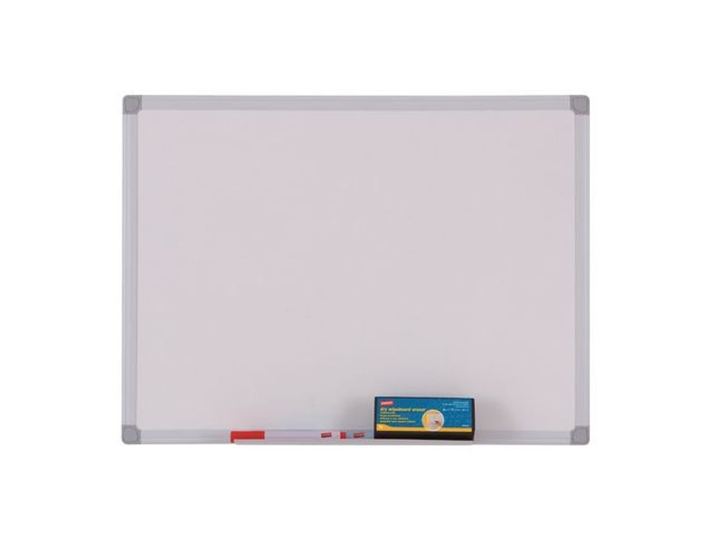 Snygg och praktisk whiteboardtavla med aluminiumkantlister och plasthörn. Skriv upp viktig information eller sätt upp den med magneter! Kan också användas som en anslagstavla med magneter. Levereras inkl. konsoler, pennhylla och monteringsanvisningar. - Mått: 120 cm x 90 cm - Pulverlackad stålyta - Magnetisk - Avrundade kantremsor i matt anodiserad aluminium - Runda ljusgråa plasthörn - Dold väggmontering - Kan hängas antingen vertikalt eller horisontellt - 25 års garanti - Levereras inkl. beslag, avtagbar pennhylla och monteringsanvisningar