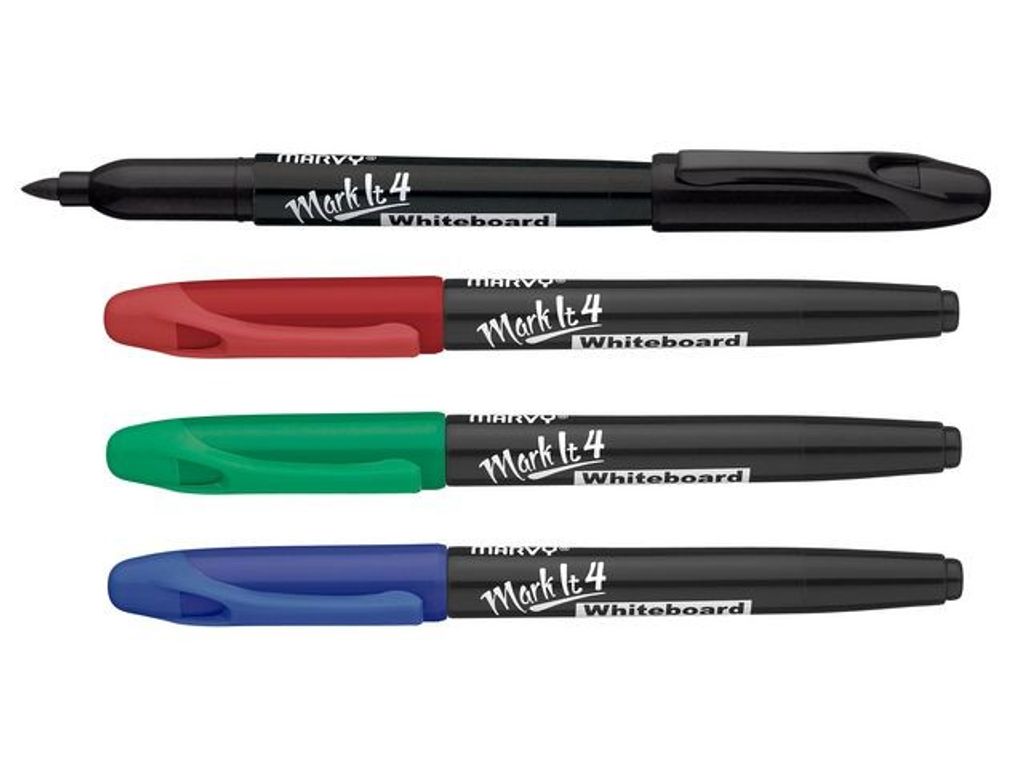 Dela information med klassen eller på ett möte med denna Markit 4 whiteboardpenna. Skapa en tidslinje i klassrummet eller delge mål på kontoret med denna Markit 4 whiteboardpenna. Alkoholbaserat bläck skriver tydligt för text och illustrationer och kan enkelt torkas bort utan att lämna spår av bläck efter sig. Den smidiga utformningen med spets gör att denna Markit 4 whiteboardpenna. är lätt att hantera, samtidigt som du skapar tydliga och läsbara skrivelser och ritningar. - Icke permanent bläck - Med huv - Rund spets - Mediumspets 2mm - Textfärg: Svart, Röd, Grön och Blå - Färg pennkropp: Svart