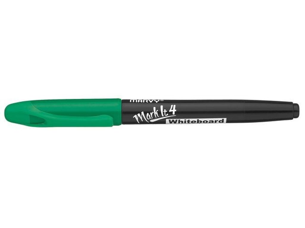 Dela information med klassen eller på ett möte med denna Markit 4 whiteboardpenna. Skapa en tidslinje i klassrummet eller delge mål på kontoret med denna Markit 4 whiteboardpenna. Alkoholbaserat bläck skriver tydligt för text och illustrationer och kan enkelt torkas bort utan att lämna spår av bläck efter sig. Den smidiga utformningen med spets gör att denna Markit 4 whiteboardpenna. är lätt att hantera, samtidigt som du skapar tydliga och läsbara skrivelser och ritningar. - Icke permanent bläck - Med huv - Rund spets - Mediumspets 2mm - Textfärg: Grön - Färg pennkropp: Svart