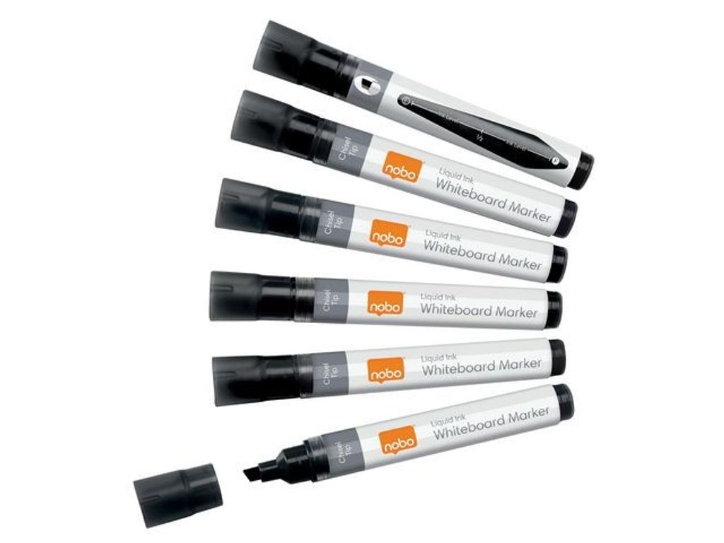 Snabbtorkande pennor för daglig användning. Dessa icke-permanenta whiteboardpennor för dagligt bruk är mycket mångsidiga för användning på icke-porösa ytor som whiteboards, glas och emalj. De är snabbtorkande och kan enkelt tas bort med en torr trasa. Dessa flytande bläckpennor har också ett praktiskt reservoarfönster som visar bläcknivåer så att du aldrig står utan i ett avgörande ögonblick. Finns i olika färger för att tillgodose alla dina presentationsbehov. Perfekt för skolor, kontor och hemma. Förpackning med 10 pennor med en 4 mm mejselspets för jämna linjer. Används med en Nobo-tavla för optimal prestanda.Whiteboard-pennor med flytande bläck ger klara och ljusa färger på whiteboards och icke-porösa ytor. Förpackning med 10 WB pennor, mejselspets. - Icke permanent bläck - Med huv - Snedskuren spets - Spetsbredd: 4,0 mm - Textfärg: Svart - Färg pennkropp: Vit -