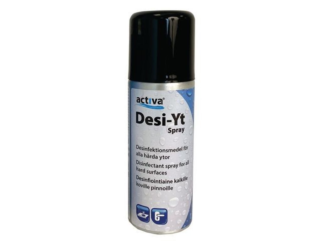 Desi-Yt är en desinfektion i sprayform - snabbt och hygieniskt. Spraya på en mjuk trasa, papper eller direkt på ytan som ska behandlas. Låt dunsta eller torka med papper. Lämnar inga rester på ytan och är helt doftfri. Underlättar desinficering av hårda ytor som dörrhandtag, ledstänger, kranar etc. - Oparfymerad